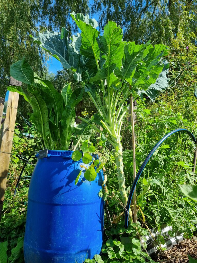 Die Gemüsebeete werden mit Schafwolle und organischen Material gemulcht und Jauchen zum Düngen selbst hergestellt.