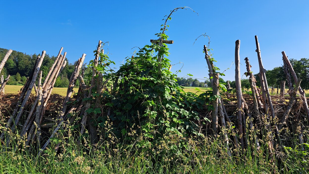 Benjeshecken können auch als Kletterhilfe für viele Pflanzen sein, die eine Stütze brauchen.