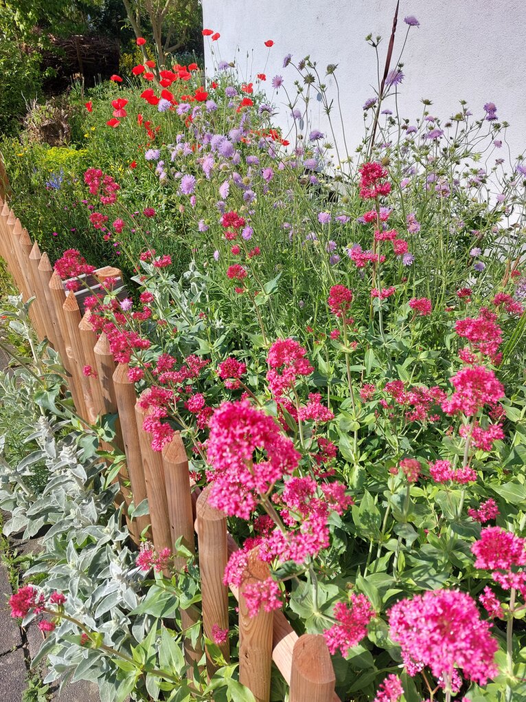 (Ich glaube, deine Flockenblumen (in der Bildunterschrift) sind Skabiosen. Vielleicht sehe ich sie aber auch nur nicht ;-) . )