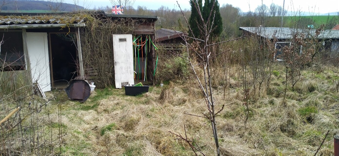 Die Hütte war entsprechend durch und nicht nur wegen der Fenster „Zimmer mit Ausblick“. Es wurde auch immer wieder Müll reingestellt, der unliebsame Nager angezogen hatte. Okay, die Hütte kann ich hoffentlich noch soweit retten dass sie als Geräteschuppen taugt. Vom Verein bekam ich freundlicherweise Unterstützung bei der Abfuhr des Mülls. ...