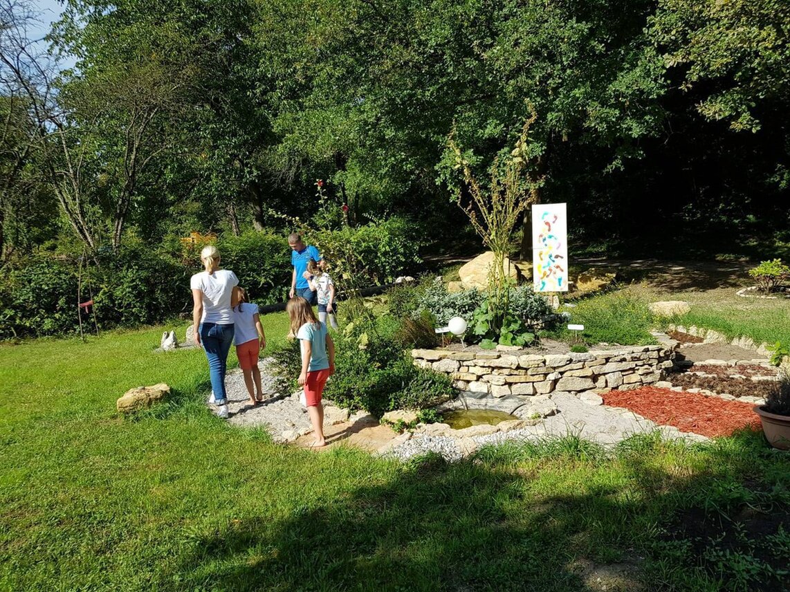 -Kräuter- und Beerengarten, Barfußweg, Aussichtsterrasse, naturkundliche Infotafeln, Klangpfad, Meditationsrondell, Kinder-Spielepfad “Alte Spiele”.