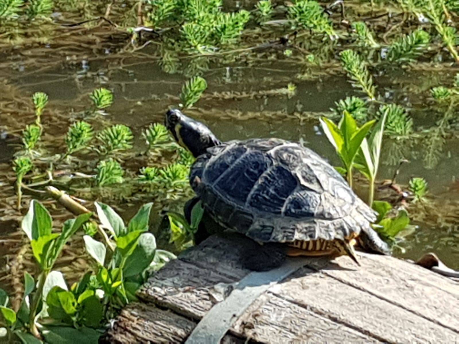 -teilweise seltene Schmetterlinge wie Kleiner Schillerfalter u.a., Eisvogel, sämtliche Vogelarten, Ringelnatter, Blindschleichen, Nutria, Blässhühner, Stockenten, Graureiher, Nilgänse, Wasserfrösche, Gelbwangenschildkröten (wohl ausgesetzt worden), Goldfische im Teich, Füchse, Rehe und Wildschweine, die zum Trinken und Fressen kommen und natürlich viele Kleinstlebewesen und Insekten.
