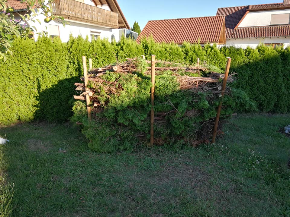 Die Thujas brachten die nötige Grundlage für eine Benjeshecke