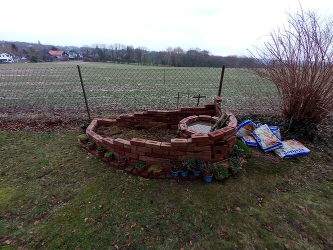 Am Wochenende schaffe ich es hoffentlich das Magerbeet inkl Minihochteich fertig zu befüllen. Gehortelter Spielsand und nährstoffarmer Laubkompost bilden die Füllung. Es fehlen nur noch drei oder vier Schubkarren.
