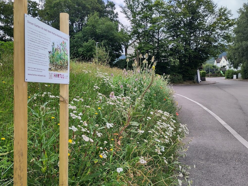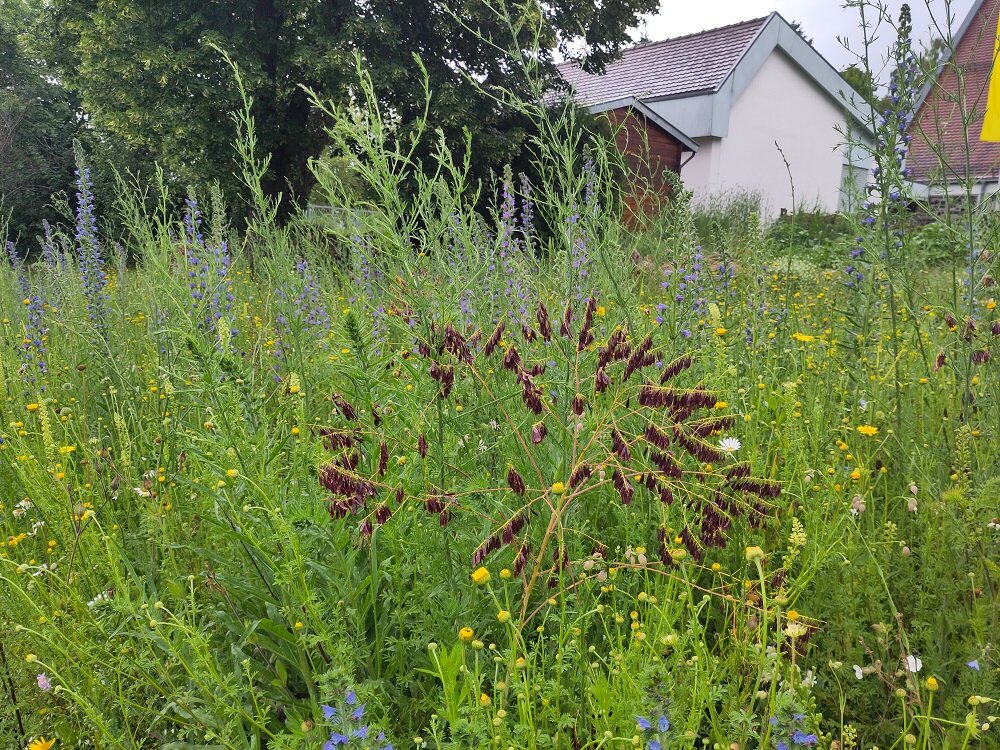 Die eigentliche Hotspot-Zone mit dem Samengemisch von Rieger-Hoffmann wurde natürlich eingesät und zeigte schöne Ergebnisse. Dank einer Botanik-App konnten wir feststellen, dass unser Hortus mit 59 Pflanzenarten zahllosen Insekten Nahrung/Unterschlupf bieten kann!