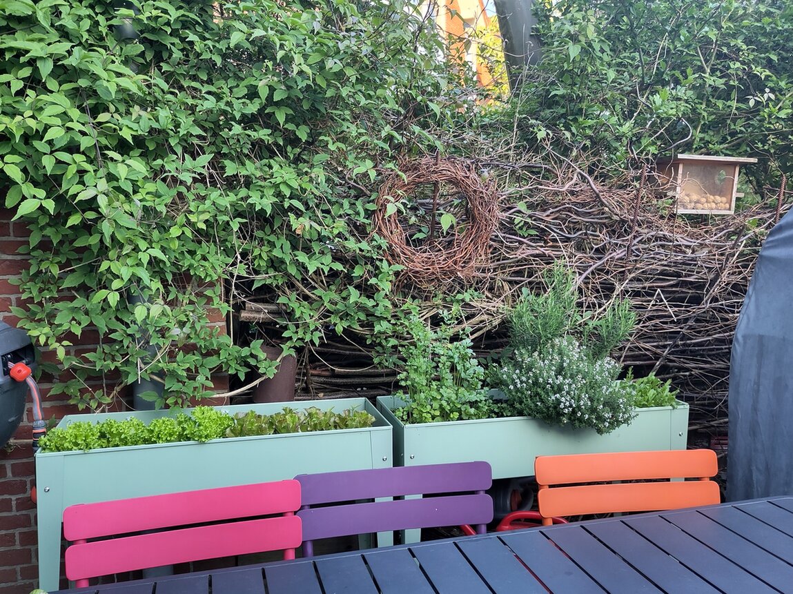 Insgesamt pflanze ich neu ausschließlich heimische Pflanzen und versuche alle neuen Dinge aus vorhandenem zu schaffen oder über Kleinanzeigen kostenfrei zu ergattern.
