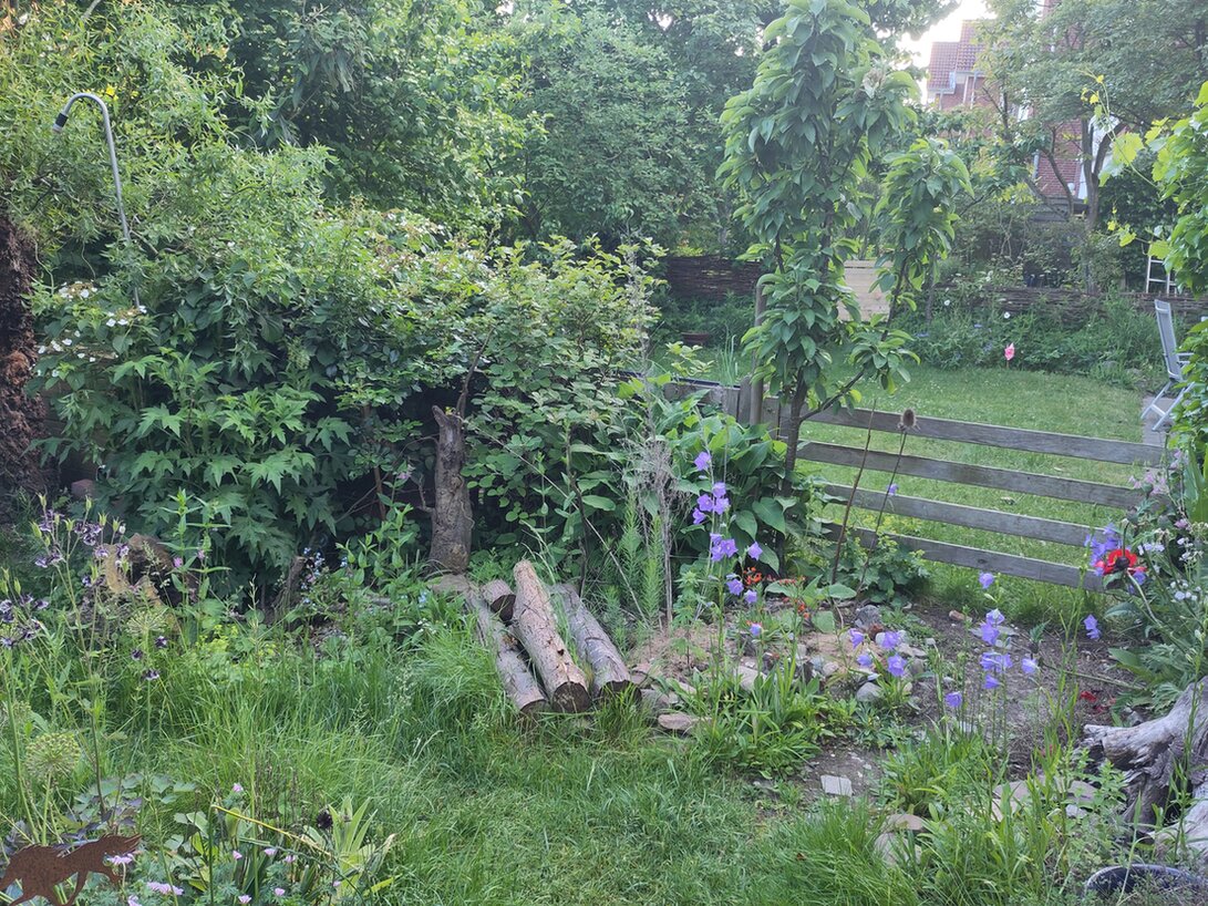 Ich habe damals Recht klassisch begonnen, einen Garten anzulegen. Im Sinne eines Naturgartens entwickelt es sich seit ca. vier Jahren. Zu dem Zeitpunkt trafen wir einen geschwächten Igel mitten am Tag an und mir wurde klar, was eigentlich um uns herum vor allem mit der Natur passiert.