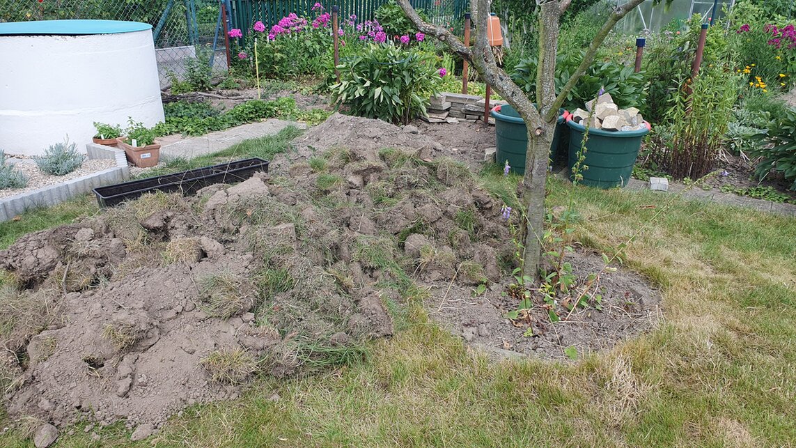 *Da die Erde sehr lehmig ist, habe ich für eine Drainageschicht einen Teil ausgehoben.
